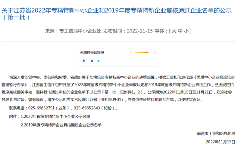 據(jù)江蘇省南通市工業(yè)和信息化局近日發(fā)布的《關(guān)于江蘇省2022年度專精特新中小企業(yè)和2019年度專精特新企業(yè)復(fù)核通過企業(yè)名單的公示(第一批)》,江蘇江海潤液設(shè)備有限公司成功獲評“2022年江蘇省專精特新中小企業(yè)”!