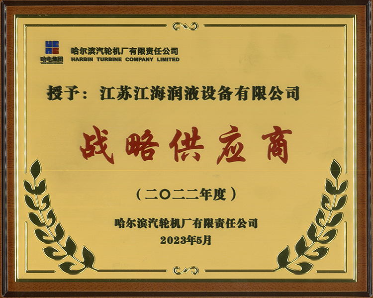 近日,江蘇江海潤液設(shè)備有限公司再次以潤滑設(shè)備產(chǎn)品質(zhì)量、交貨期和服務(wù)等方面優(yōu)秀的表現(xiàn),蟬聯(lián)哈爾濱汽輪機(jī)廠有限責(zé)任公司二0二二年度“戰(zhàn)略供應(yīng)商”稱號。江海潤液公司將再接再厲,落實按期交貨,抓好質(zhì)量提升,促進(jìn)技術(shù)創(chuàng)新,不斷強化與哈汽的戰(zhàn)略合作關(guān)系。